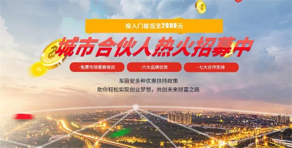為了優(yōu)惠扶持更多加盟商,車麗安更為意向加盟商推出一系列支持政策,最新推出的低至2000元的門檻城市合伙人政策,與此同時(shí)包括行業(yè)展會(huì)、線下活動(dòng)、媒體廣告、宣傳物料、人員培訓(xùn)、售后保障、年終返利等各種利好,以此來(lái)充分保障加盟商投資獲益,助力各位加盟商輕松實(shí)現(xiàn)創(chuàng)業(yè)夢(mèng)想。